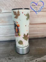They are made from stainless steel, BPA free, and double-wall vacuum insulated tumblers coated with FDA compliant epoxy. The epoxy will cover all the glitter, ink, and decals for a smooth finish so there is not worry about the decals peeling off. All items are handmade with care and special attention to details. There may be some flaws that are out of my control. These include, but are not limited to, air bubbles, glitter that does not know its place, and occasionally some colors mixing and changing.