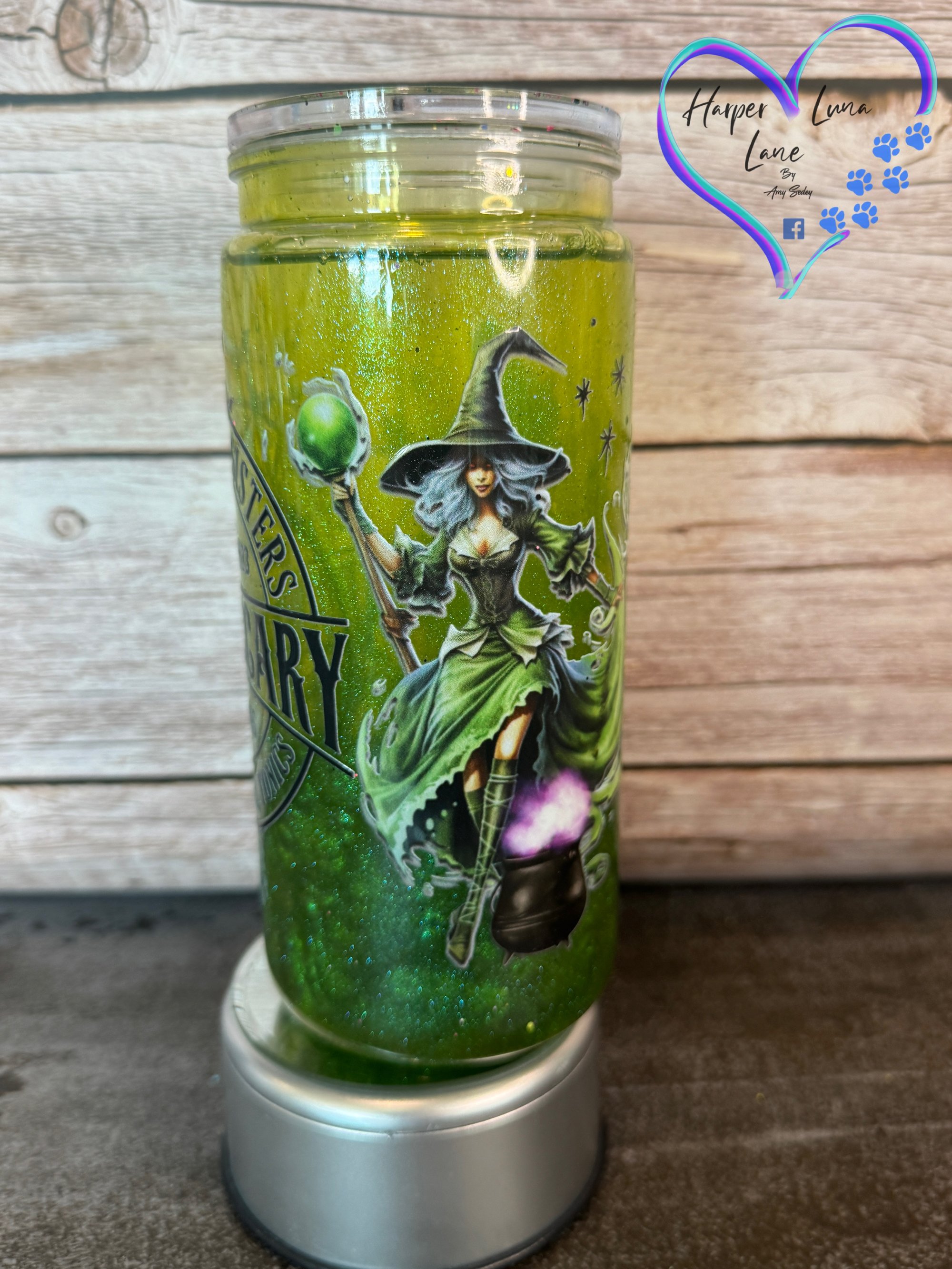 This is a unique snow globe style tumbler filled with colored fluid to create a potion drip in the double walled acrylic tumbler.